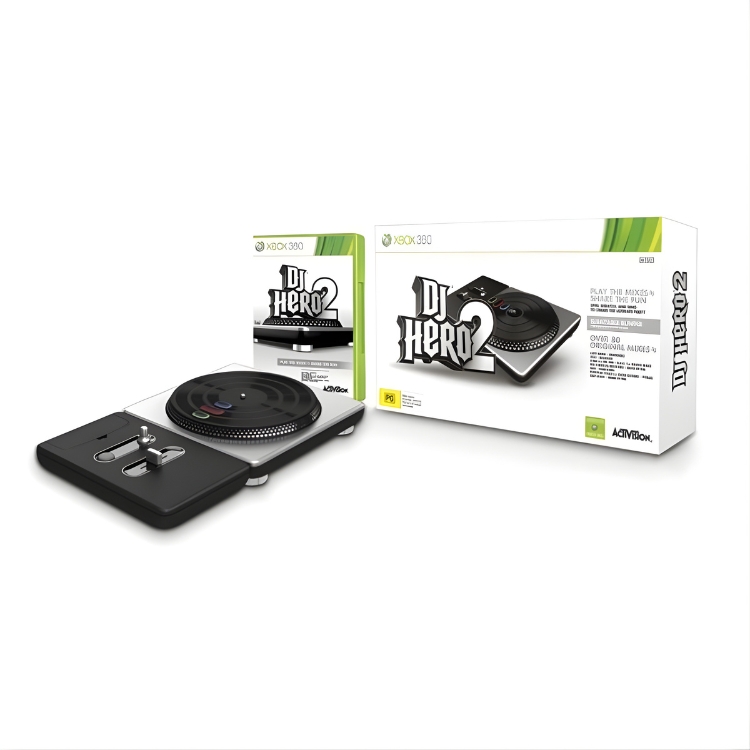 DJ Hero 2 Turntable Xbox 360 bundle. This wireless turntable transforms living rooms into nightclubs all over again with an entirely new music-gaming experience. Friends & families can become mix masters with a host of new DJ and vocal multiplayer modes, including innovative DJ Battles, and 70+ mixes featuring the biggest hits. Compatible with any Xbox 360 console.