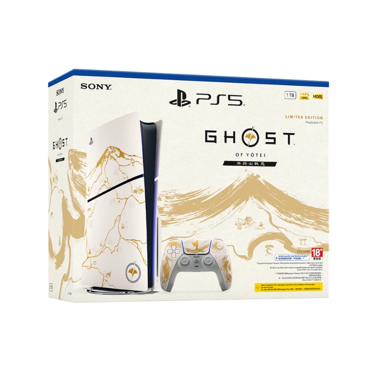 PlayStation 5 Slim ‘Ghost of Yotei’ Gold Limited Edition. Explore a limited-edition range of PlayStation®5 consoles and accessories inspired by the breathtaking landscapes and intricate details of Ghost of Yōtei. Experience Atsu’s epic tale as it unfolds across a stunning Japanese landscape on hardware inspired by Atsu’s iconic mask.