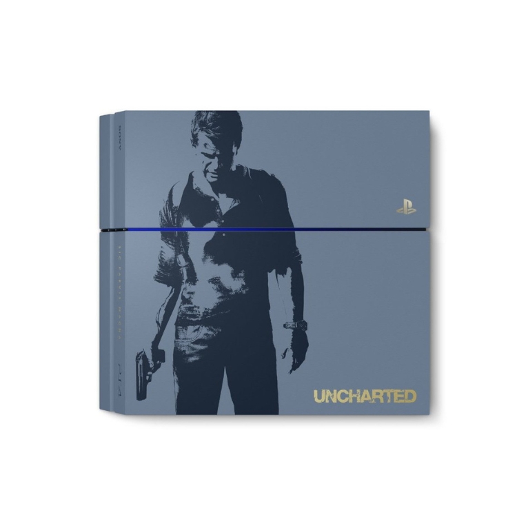 PS4 Uncharted 4 Limited Edition. Guide Nathan Drake through a gripping – and perhaps most perilous – adventure! This Limited-Edition PlayStation 4 system in Gray Blue with Custom, Uncharted 4: A Thief’s End inspired Silk Screened Artwork. Popular among fans, it is one of the most sort after collector’s edition consoles.